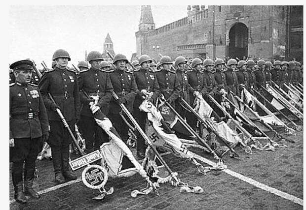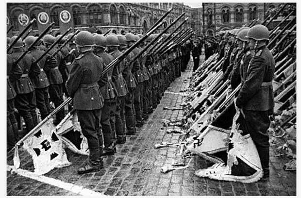 4. Все видели кадры, как к подножию Мавзолея бросают фашистские знамена. Но любопытно, что 200 знамен и штандартов разгромленных немецких частей бойцы несли в перчатках, подчеркивая то, что даже в руки древки этих штандартов брать омерзительно. И бросали на специальный помост, чтобы штандарты не коснулись мостовой Красной площади. Первым швырнули личный штандарт Гитлера, последним – знамя армии Власова. А вечером того же дня помост и все перчатки были сожжены.