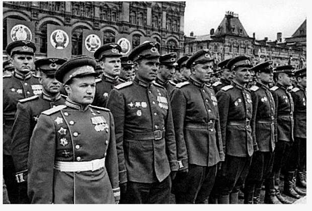 6. Чтобы участвовать в Параде Победы, надо было пройти жесткий отбор: учитывались не только подвиги и заслуги, но и вид, соответствующий облику воина-победителя, и чтобы ростом воин был не менее 170 см. Недаром в кинохронике все участники парада – просто красавцы, особенно летчики. Отправляясь в Москву, счастливчики еще не знали, что им предстоит по 10 часов в день заниматься строевой ради трех с половиной минут безукоризненного марша по Красной площади.